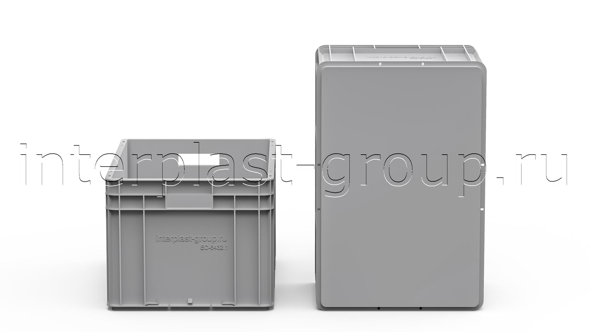 Евроконтейнер открытые ручки/сплошное дно (серый), 600x400x320 мм