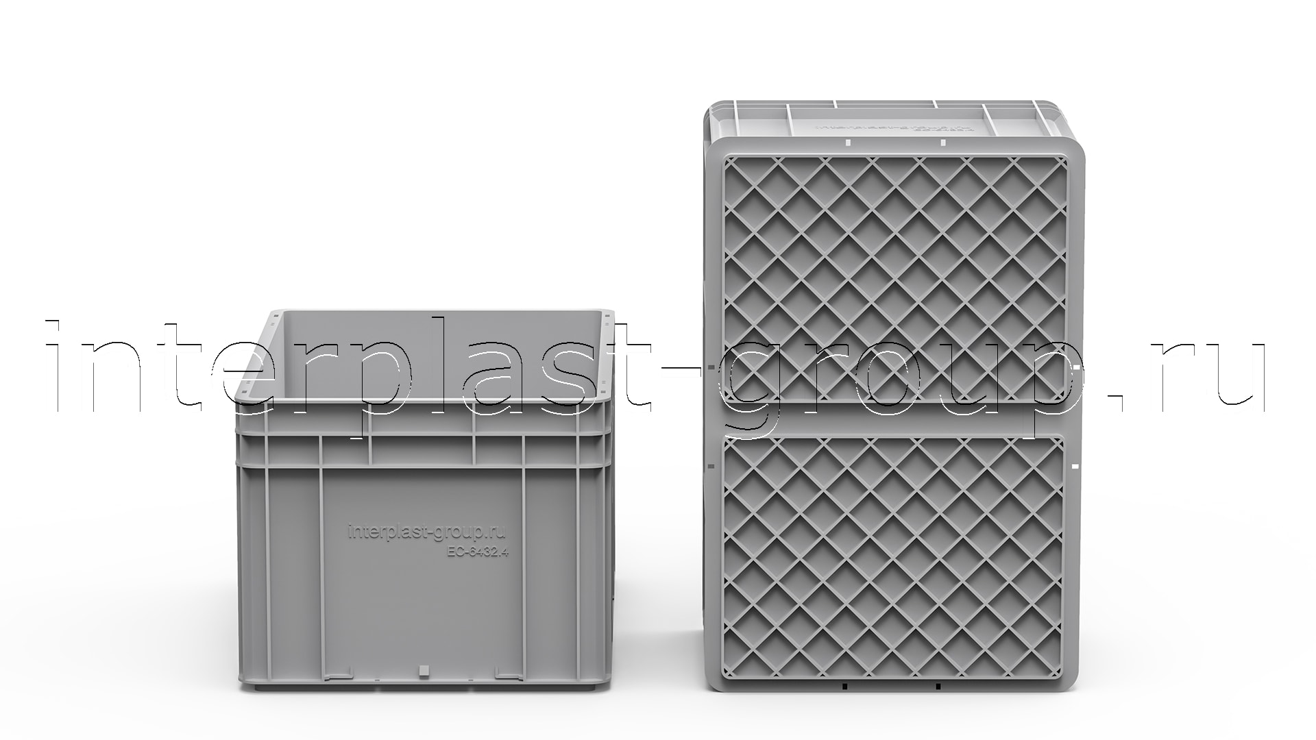 Евроконтейнер закрытые ручки/усиленное дно (серый), 600x400x320 мм