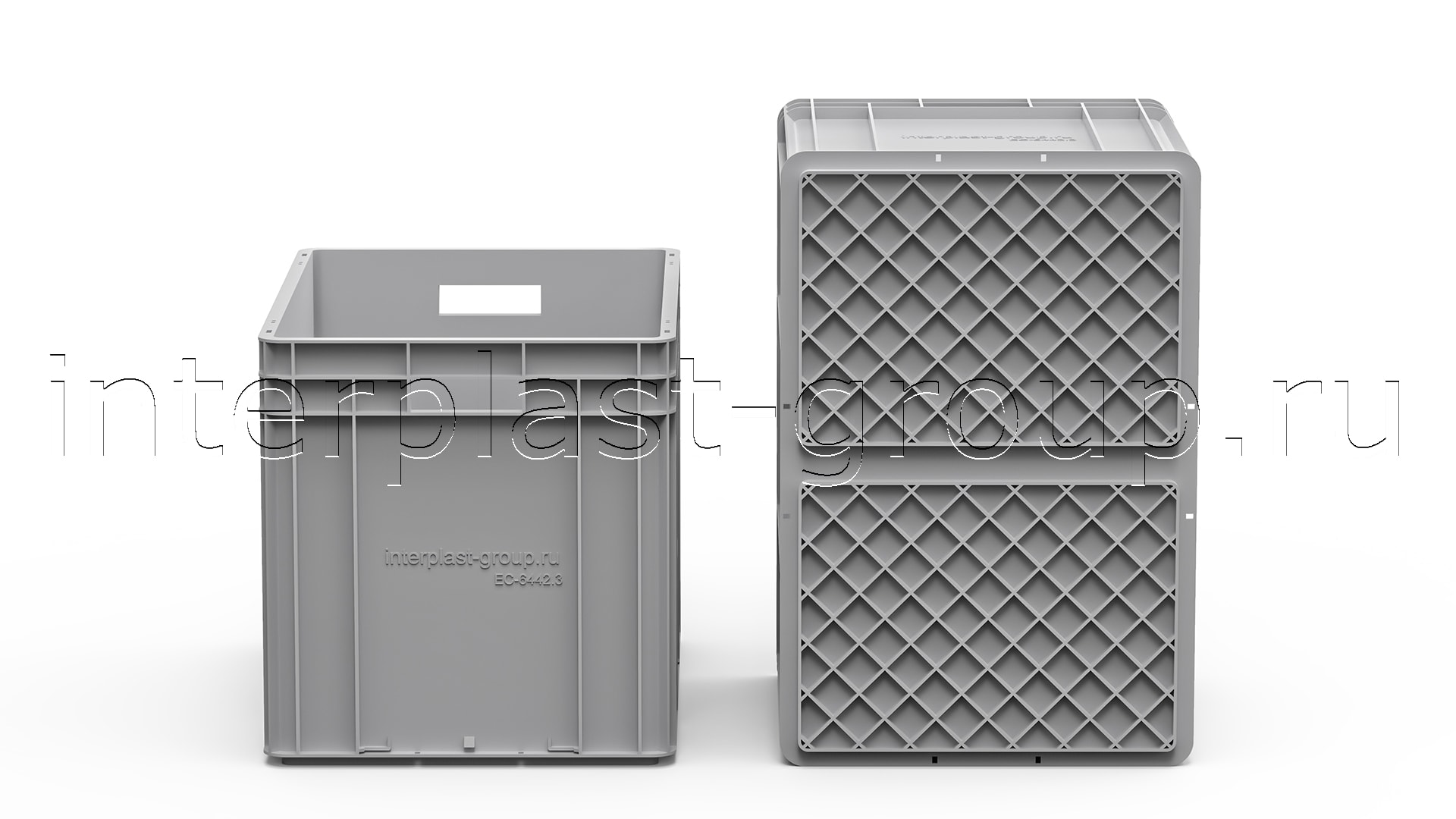Евроконтейнер открытые ручки/усиленное дно (серый), 600x400x420 мм