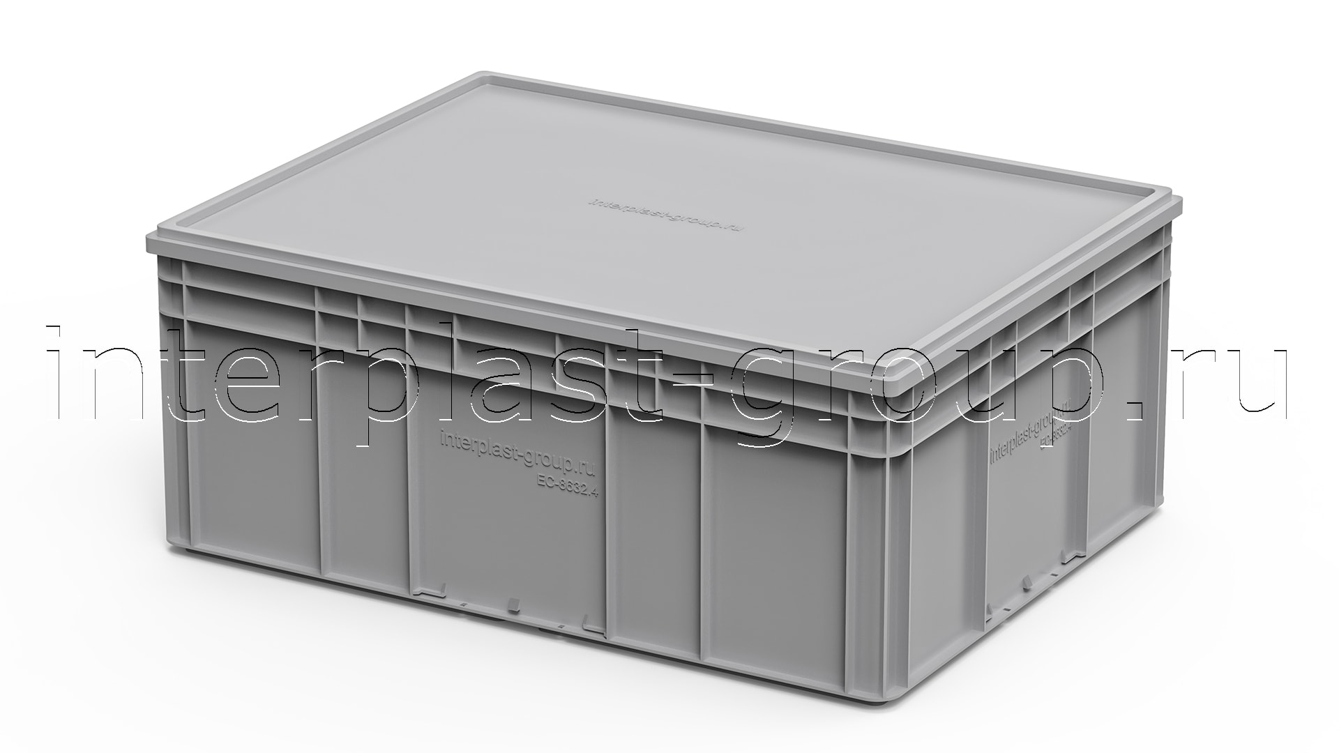 Евроконтейнер закрытые ручки/усиленное дно (серый), 800x600x320 мм