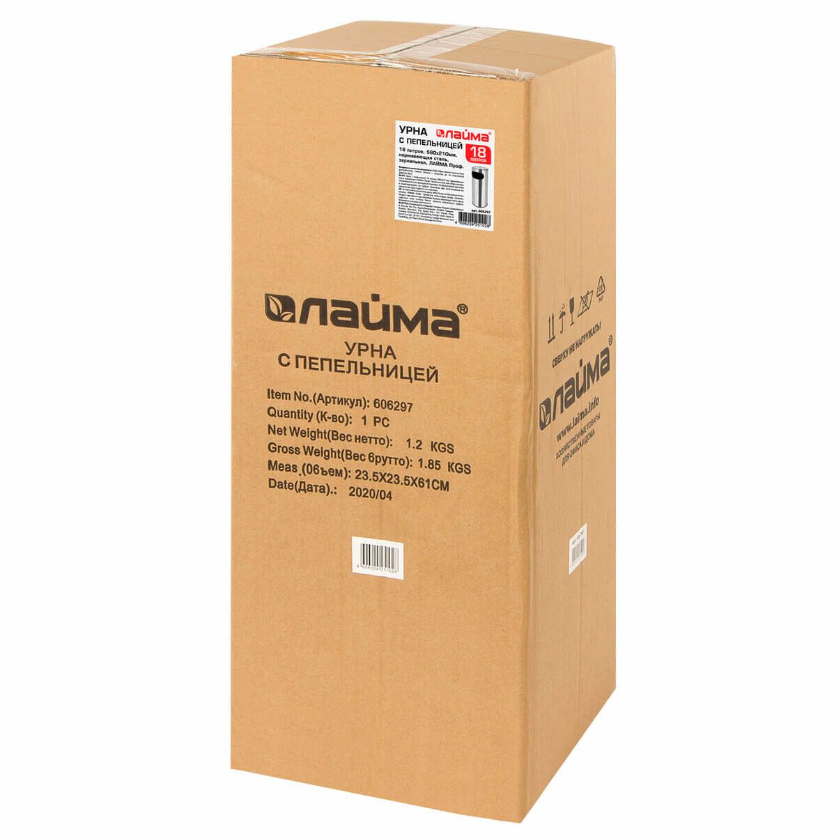 Урна с пепельницей 18 литров, нержавеющая сталь, зеркальная, LAIMA PROFESSIONAL в Королеве